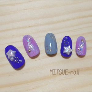 こちらは『ラメ感ネイル』大ぶりな星☆が可愛い夜空ネイル!