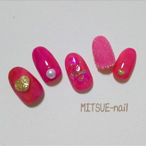 こちらは『ツヤ感ネイル』リップグロスのようなピンク…絶妙な色味と質感に″LOVE”のツヤがポイントのデザインです。