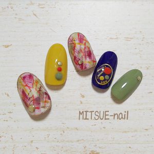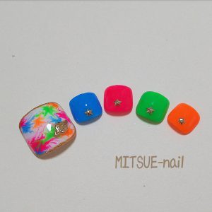 こちらは『フットネイル』デザイン!カラフルなカラーたちがアーティスティックに広がり混ざり合う…素敵なデザインになりました。
