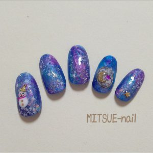 こちらは『ネイルデザイン冬バージョン!』奥行感のあるデザイン…そこに私らしい雪だるまちゃん登場!((´∀`)) 雪のシーズンには、ぴったり」なアートデザインだよ。